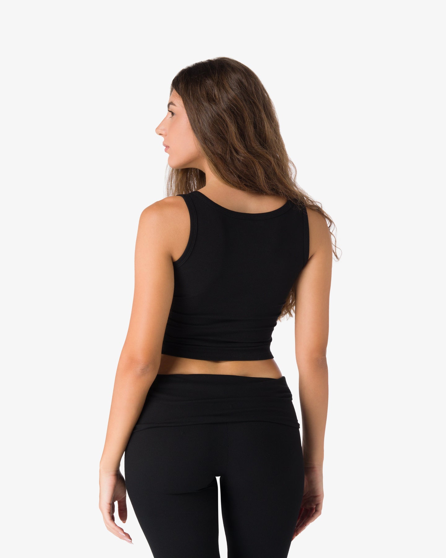 This micro-ribbed fabric tank top wraps the body with a soft and comfortable fit that enhances your shape. The cropped cut and wide straps make it a versatile piece, perfect as a base for any outfit.